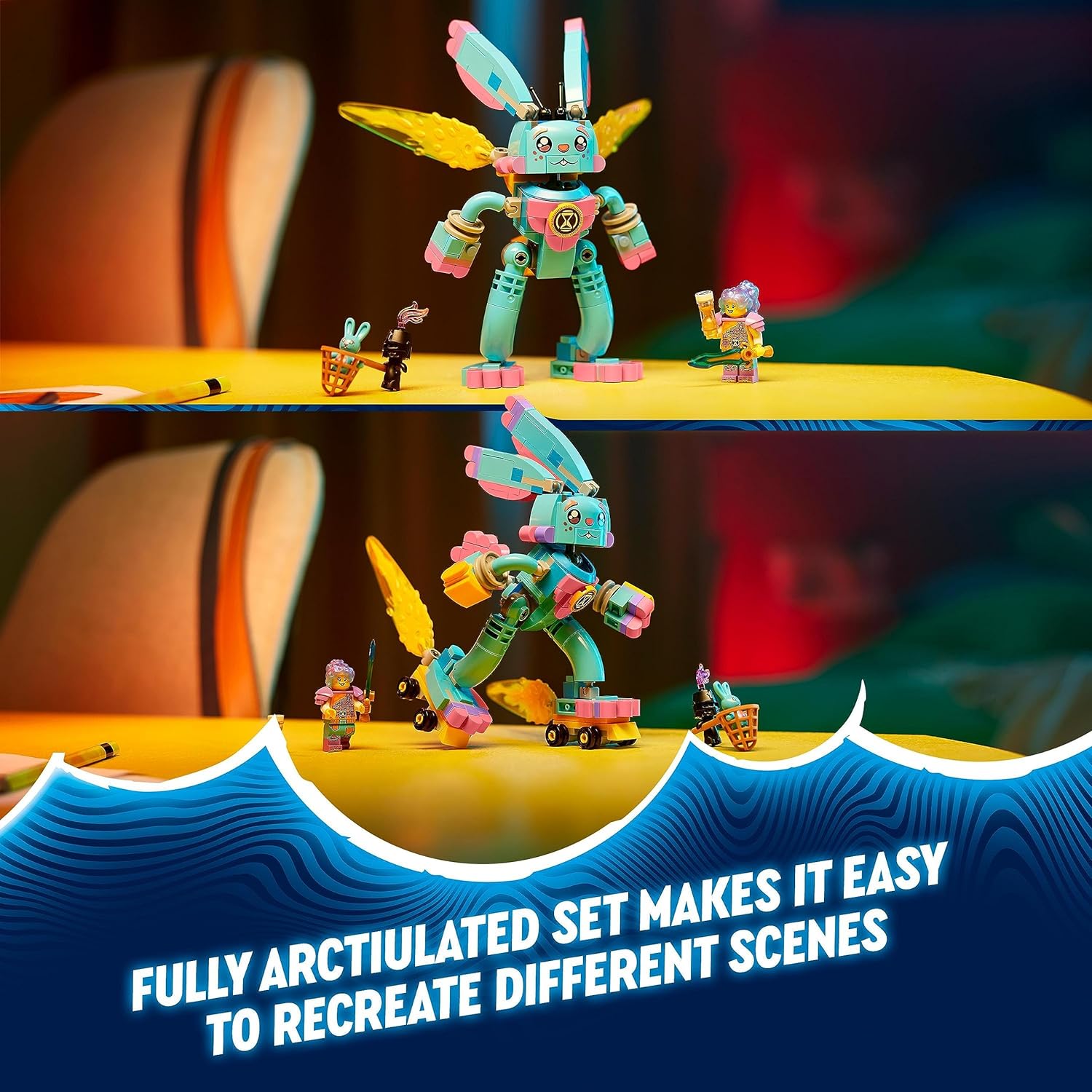 LEGO DREAMZzz Izzie and Bunchu the Bunny set features a posable rabbit toy figure to be built in 2 ways plus the TV show character minifigures Kids can help Izzie create a large version of...