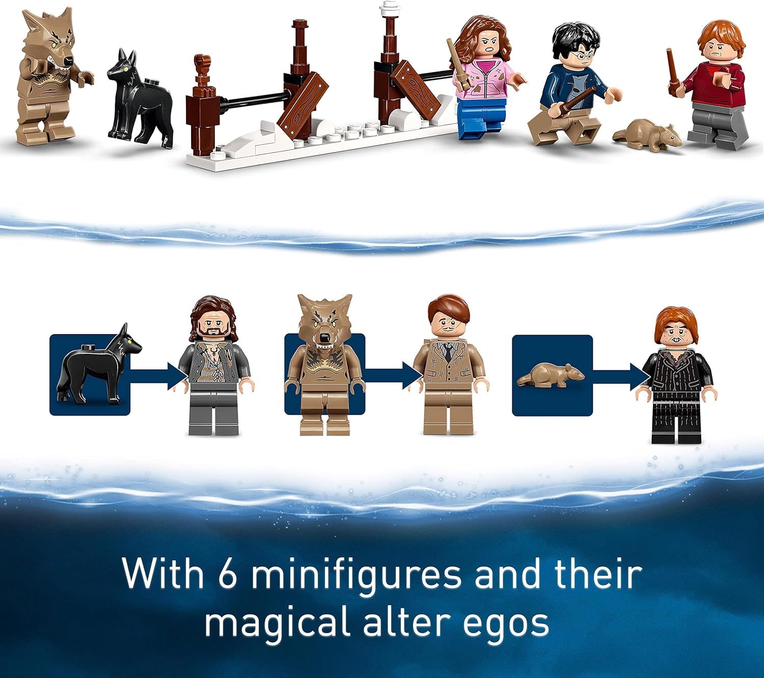 • Includes 6 LEGO Harry Potter minifigures: Harry, Hermione, Ron Weasley, Sirius Black, Peter Pettigrew and Remus Lupin who turns into a werewolf