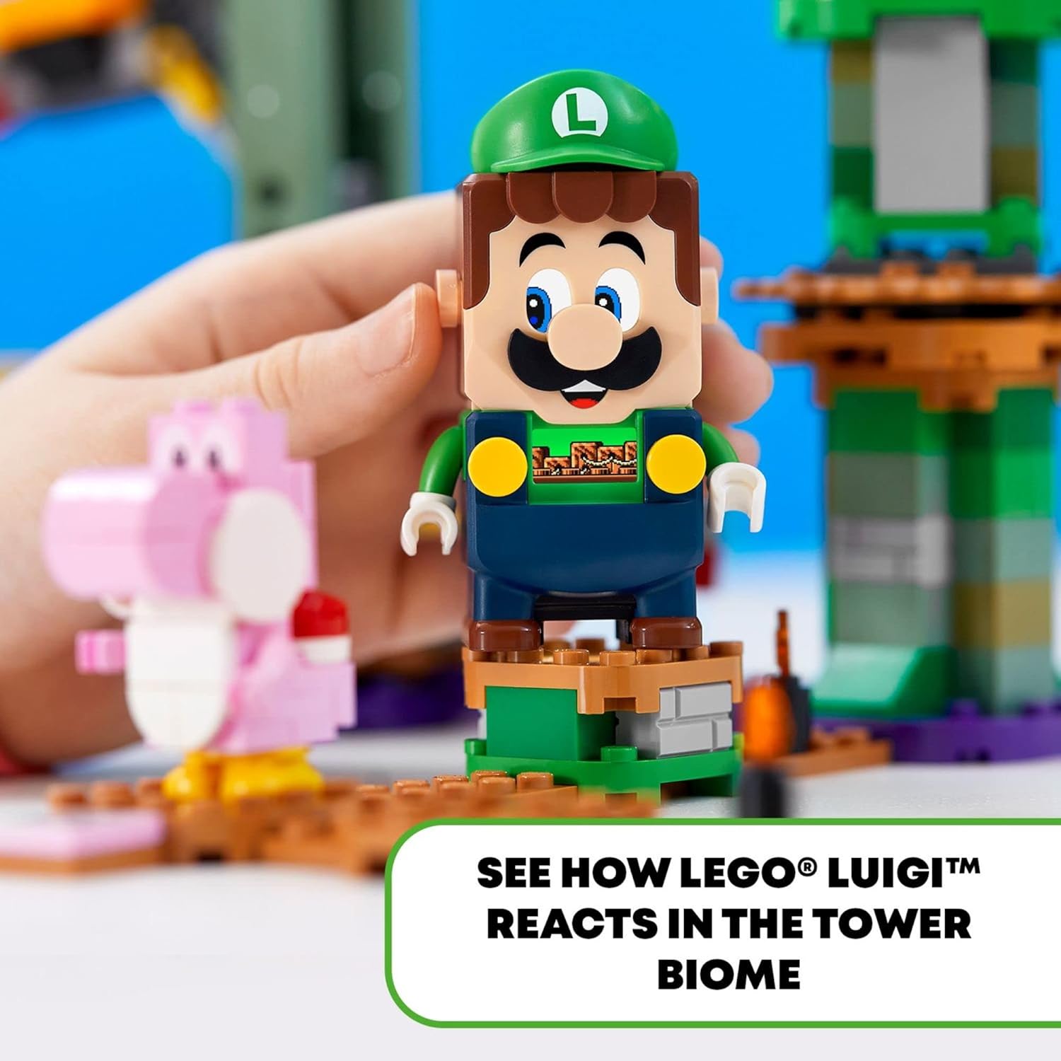 Introduce children to the interactive LEGO® Super Mario™ universe with this Adventures with Luigi Starter Course (71387). An awesome gift toy for trend-setting kids, it features a LEGO® Luigi™ figure that gives instant expressive responses via an LCD screen and speaker. Players earn digital coins for helping LEGO Luigi complete spinning seesaw and flying challenges, interactions with Pink Yoshi and defeating Boom Boom and a Bone Goomba. The nougat-brown-colored bricks in this Tower biome also trigger different reactions from LEGO Luigi, and the ? Block offers extra rewards.
