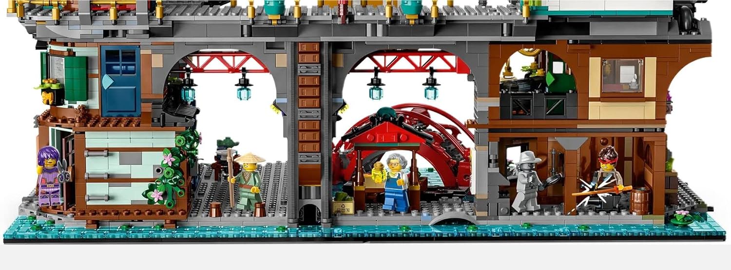 • 21 minifigures – The model comes with many minifigures for role play, including Blacksmith Kai, Urban Sora, Urban Arin, Detective Zane, Hounddog McBrag, Gayle Gossip, Chamille, Miss Demeanor and Dareth