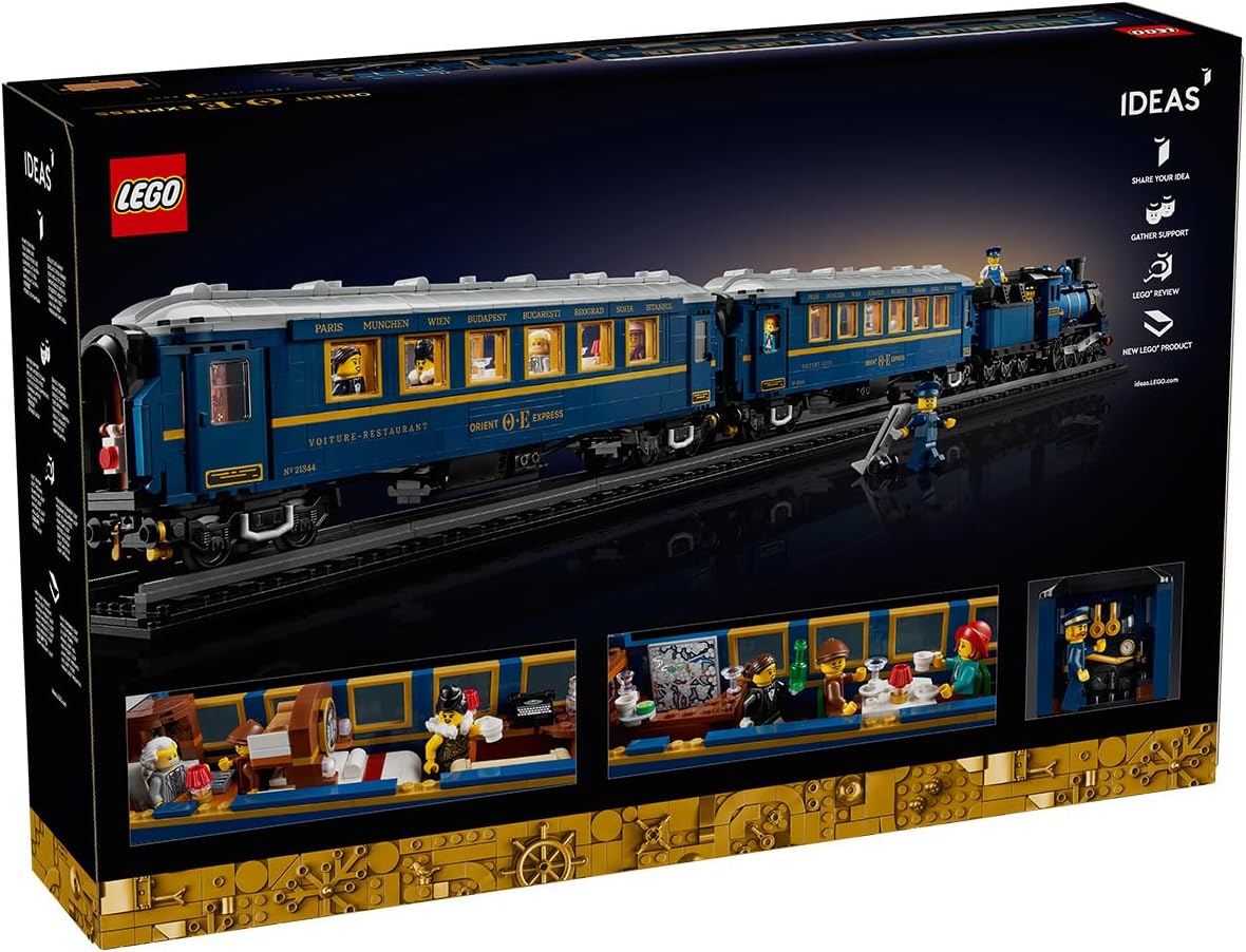 • LEGO® Ideas The Orient Express Train (21344) – Embark on a creative journey to capture the vintage glamour and rich history of the Orient Express steam train in a detailed, buildable display model