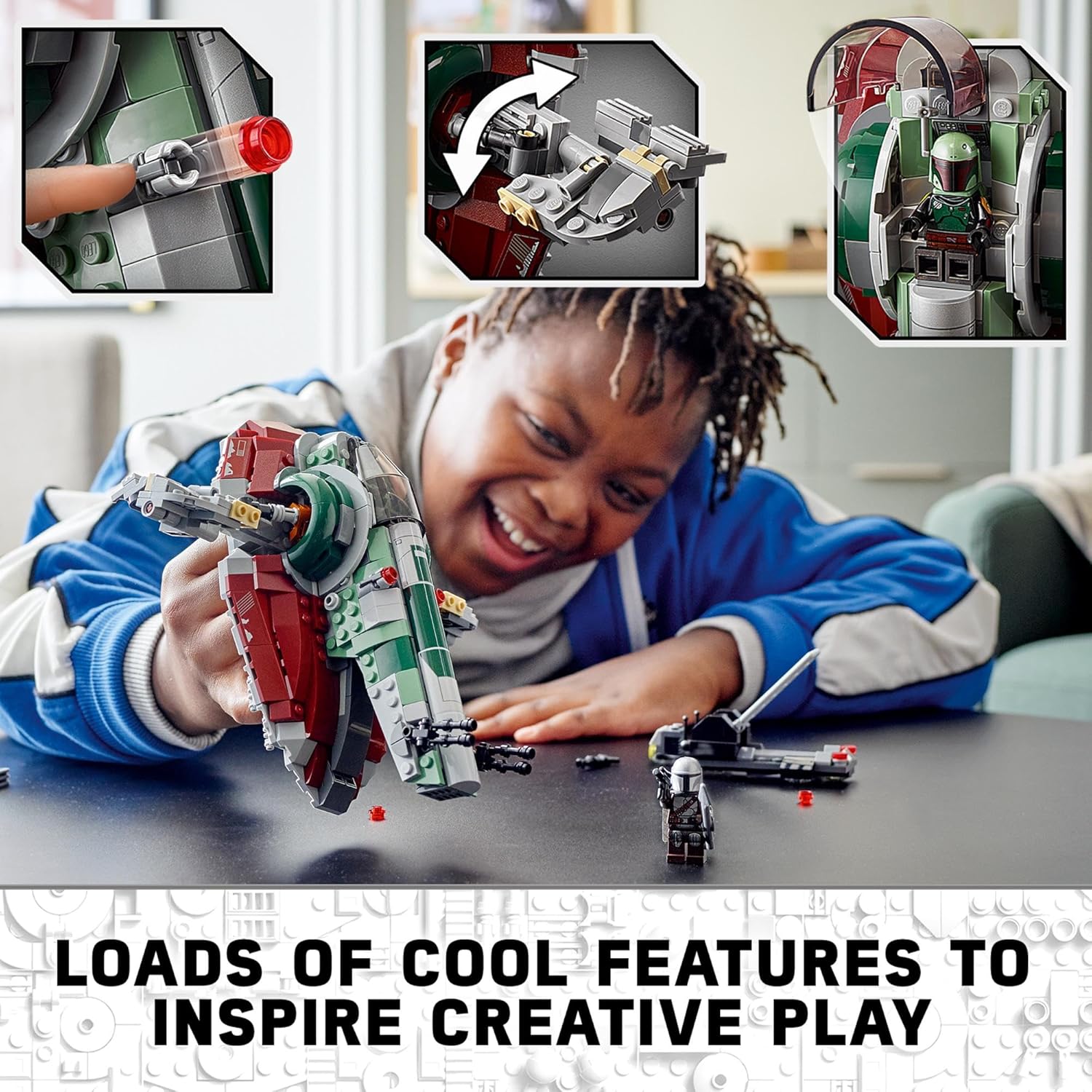This LEGO Star Wars building toy for kids, boys and girls features a LEGO brick built model of Boba Fett’s Starship, with a handle for easy flying, rotating wings and 2 stud shooters Also features...