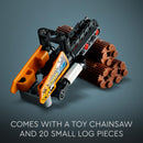 • This model truck comes with a toy chainsaw and 20 small log pieces that connect to make larger logs, ready for the ATV to transport