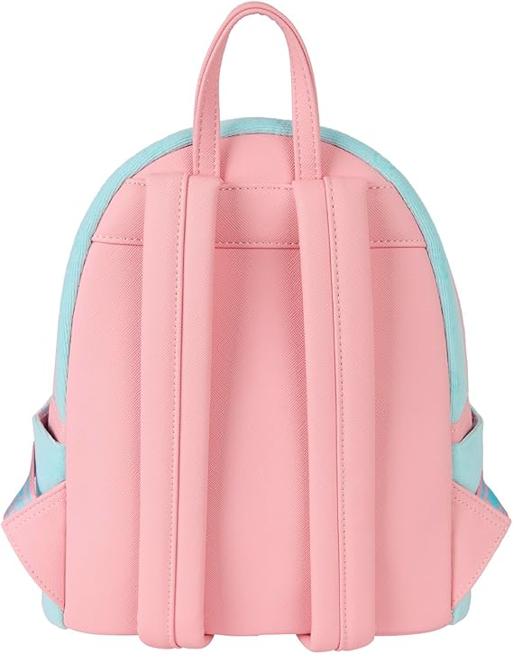 Features: Terry cloth mini backpack with faux leather (polyurethane) trim, sturdy top handle, adjustable shoulder straps, burnout terry cloth, enamel charms, ribbon trim, and printed details, coordinating interior lining. Dimensions: 9"W x 10.5"H x 4.5"D...