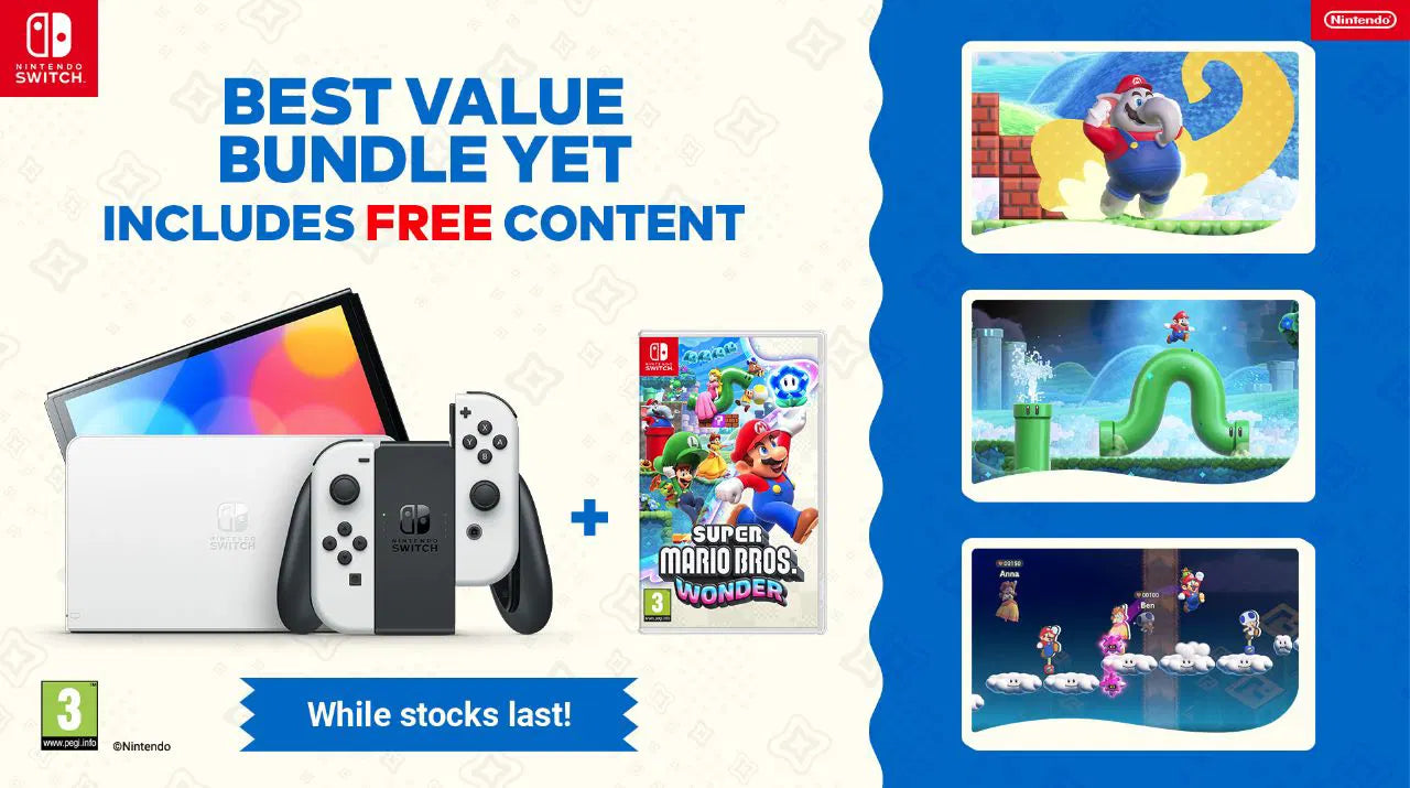 Nintendo Switch OLED Model (White) + SuperMario Bros.Wonder Pre-Installed and Nintendo SwitchOnline 12-Month Subscription Redemption Code.