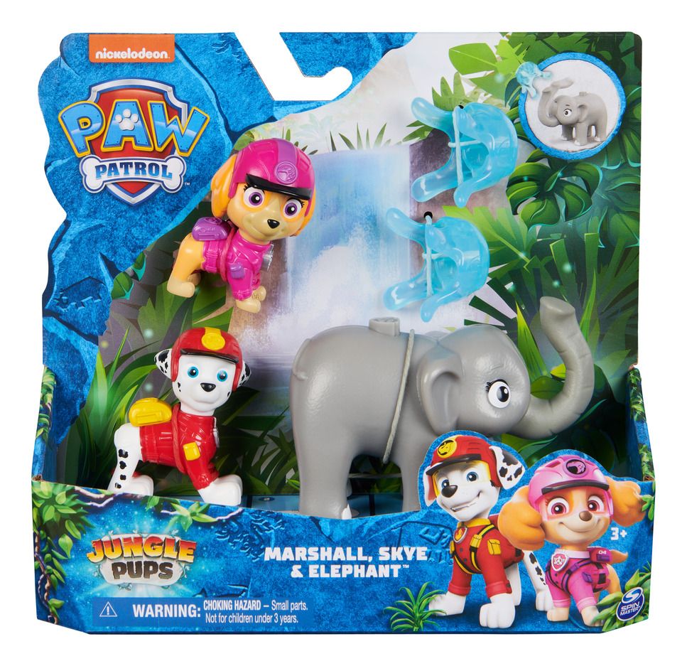 • MARSHALL & SKYE TOY FIGURES: Marshall and Skye stand over 5cm tall and look just like they do in the PAW Patrol series, dressed in their Jungle Pups uniforms and helmets • PAWSOME ELEPHANT...