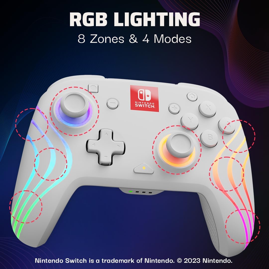 Eight RGB zones with four pre-set modes for endless lighting combinations Built-in, 2100mAh rechargeable battery with up to 40 hours of play time on a single charge 30-foot wireless connection so you play comfortably on...