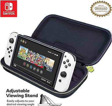 • Adjustable viewing stand allows you to play and view on the go, while providing max protection for the screen and thumb sticks when storing the Switch OLED or Switch Console