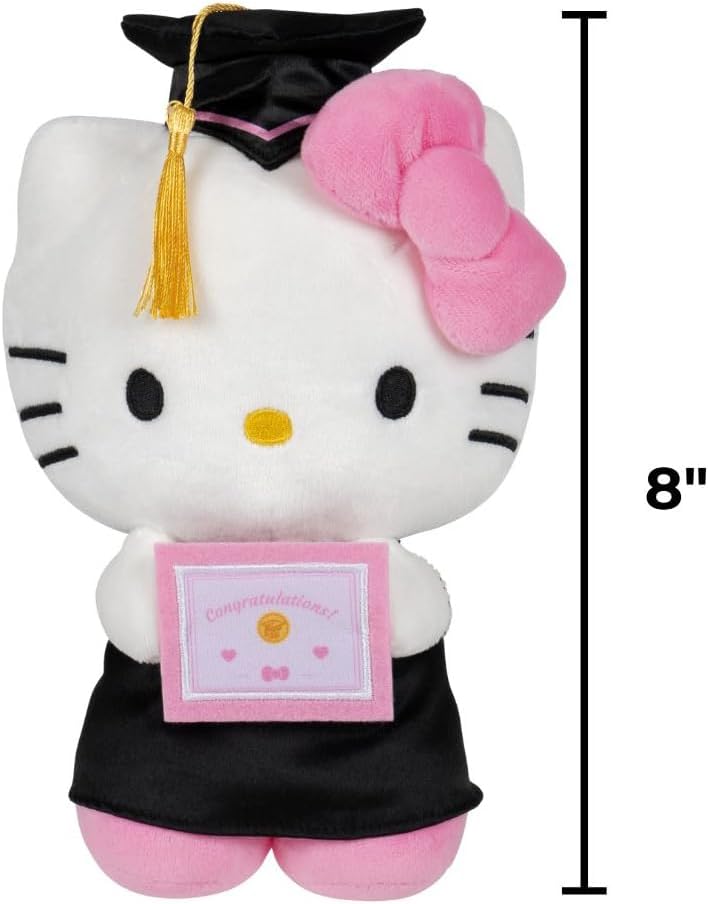 • 8-INCH PLUSH Celebrate your graduation with Hello Kitty as she proudly dons her cap and gown, holding her diploma, ready to share this unforgettable milestone alongside you