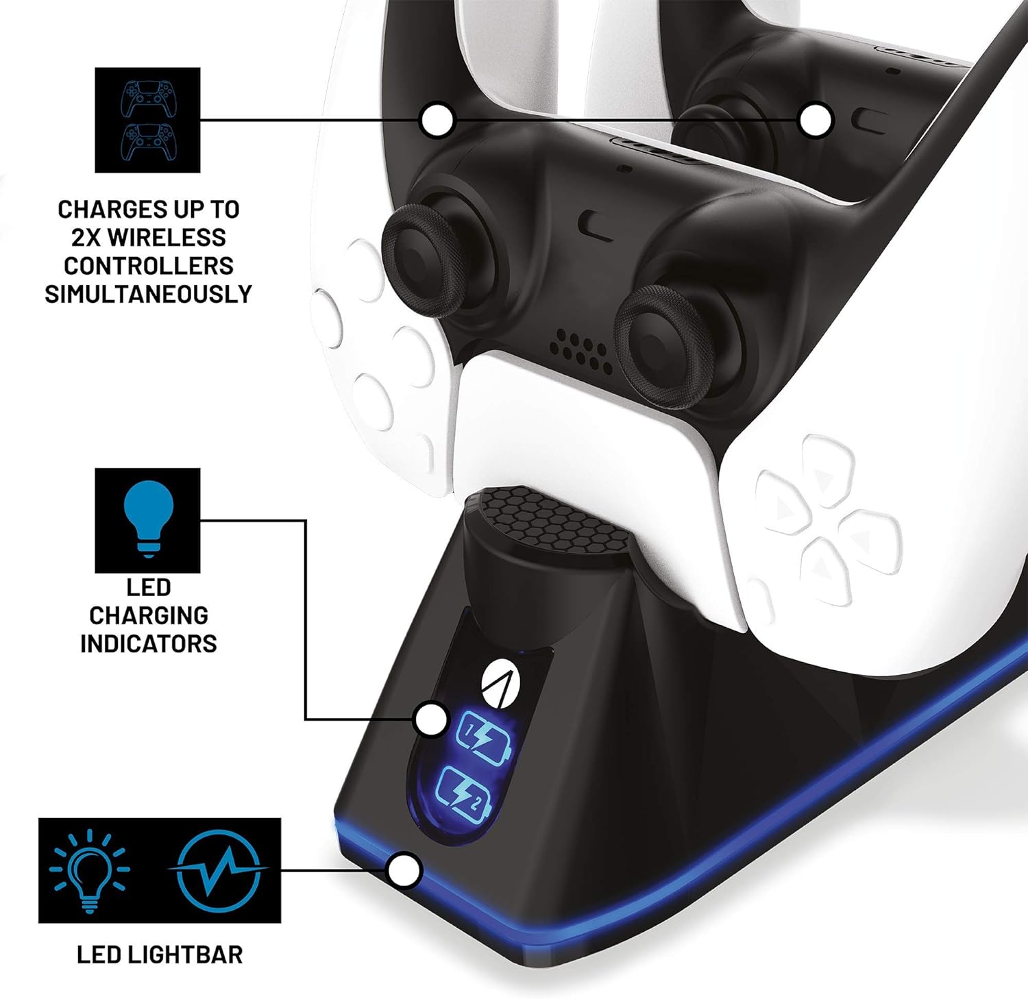Charge up to two Dual Sense controllers simultaneously Fast Charging: Direct USB-C connection allows for fast charging. The LED charging indicators let you know the status of your charging. Standby Charging: Perfect for overnight charging,...