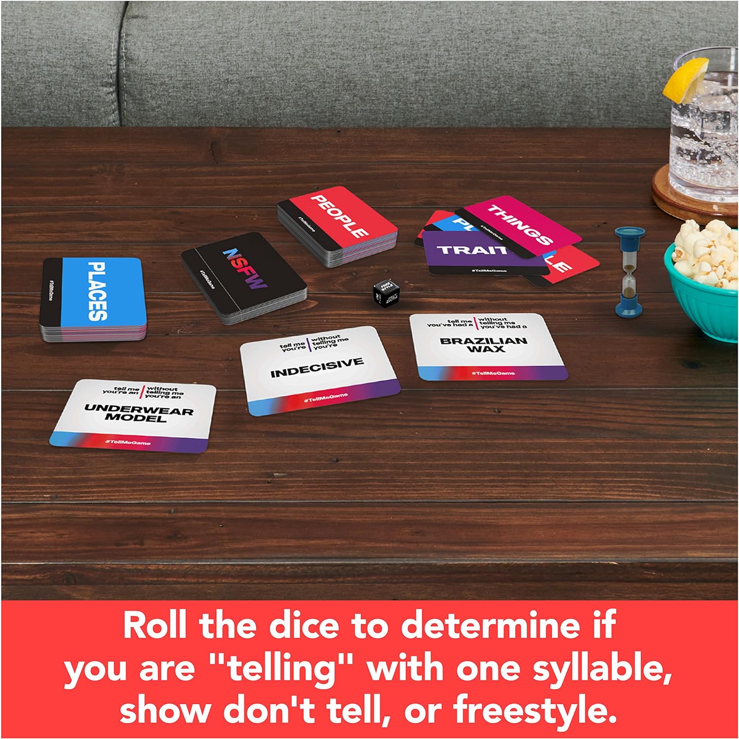 #TELLMEGAME: There are 3 ways to “tell” what your card says in this hilarious game for adults: Show Don’t Tell, One Syllable, or Freestyle. Be the fastest team to guess the words on the cards,...