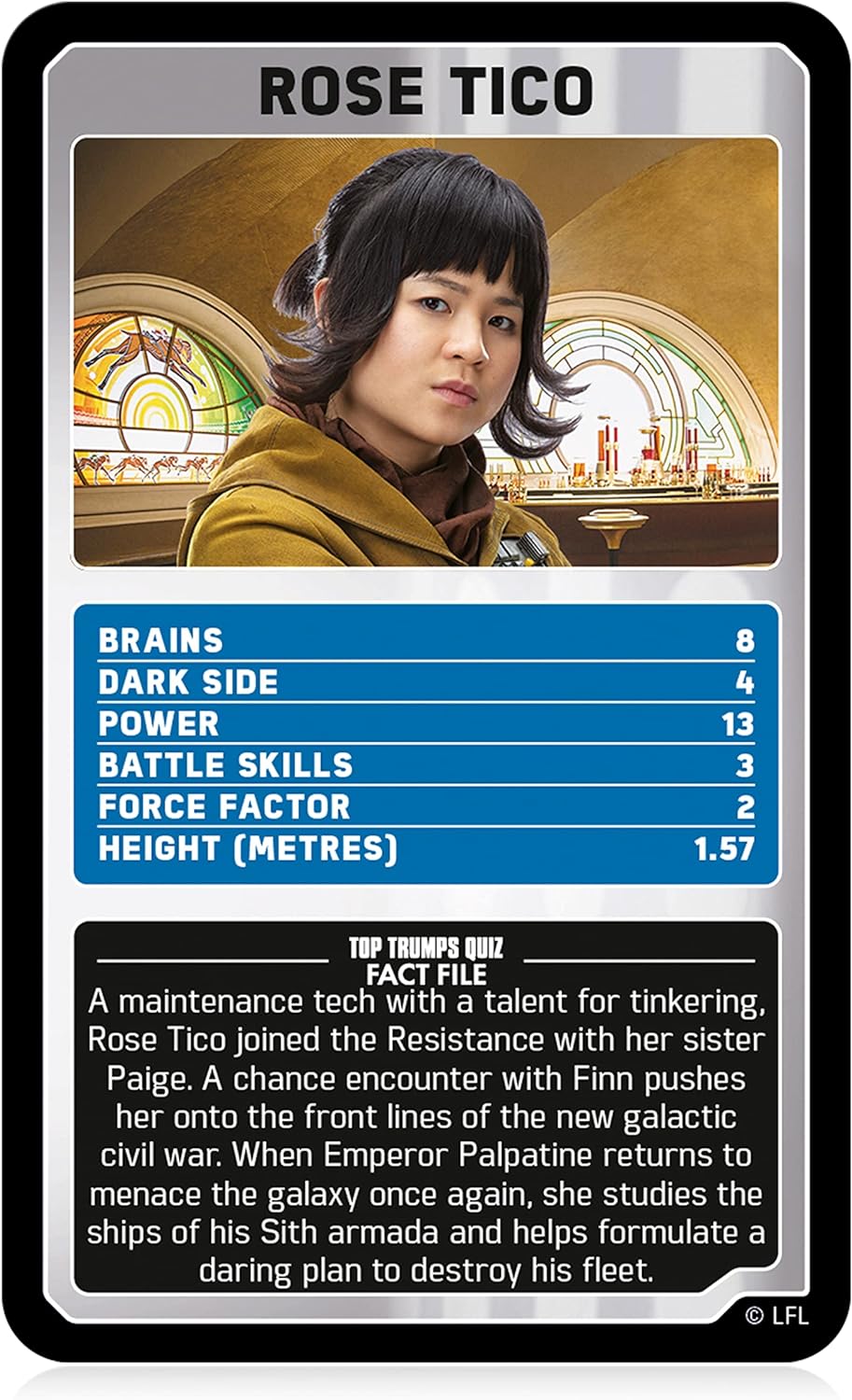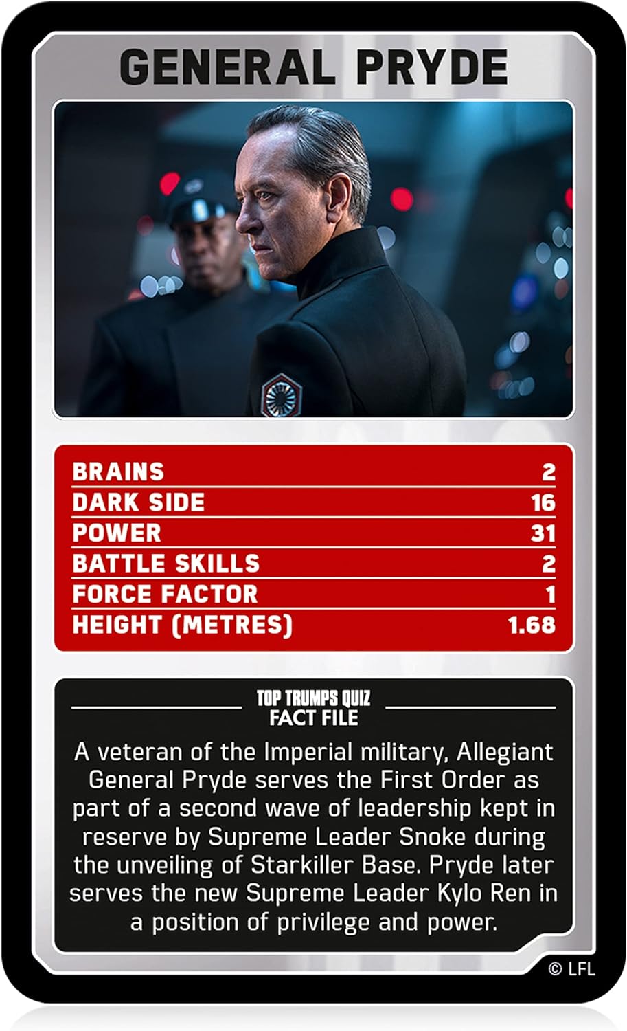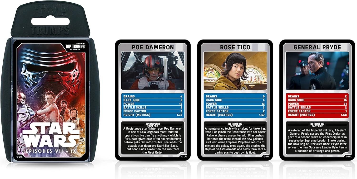 Top Trumps brings your favourite Jedi and Sith to life! Battle with Zorii Bliss, General Pryde and the First Order Snowtroopers Easy-to-carry plastic case makes this a perfect travel or holiday game Top Trumps is...