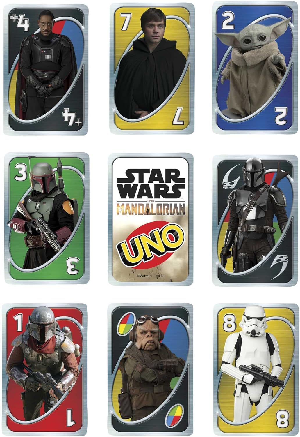 The classic UNO card game builds fun on game night with themes inspired by the Disney+ show Star Wars The Mandalorian! Features a deck , decorated with characters and graphics from the beloved series! As...