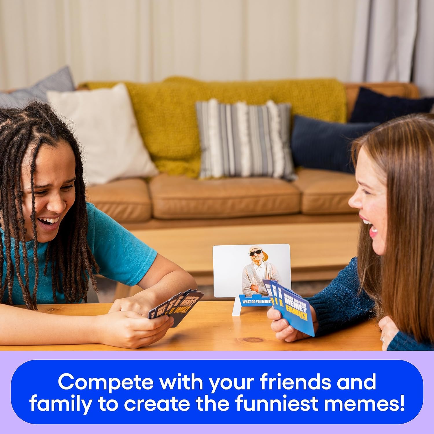 • SIMPLE TO PLAY: Compete to create the most hilarious memes by using one of your cards to caption the photo card in each round. A rotating judge decides the winner of each round.