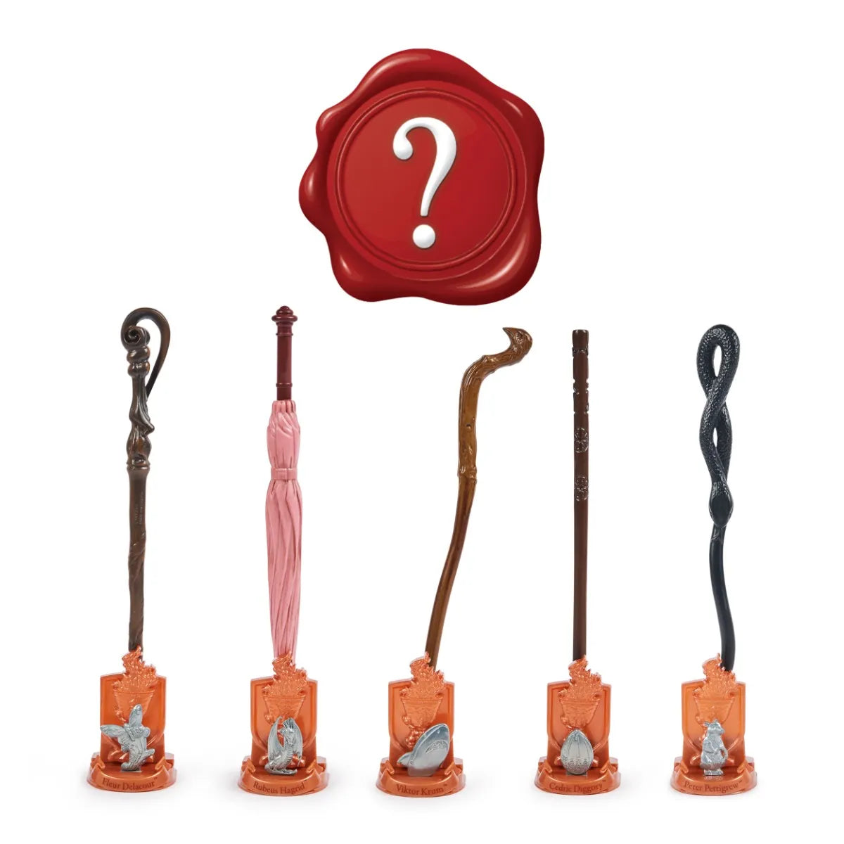 The wand chooses the wizard! This authentic 12-inch Triwizard Tournament-themed wand includes a die-cast icon and display stand! Which character’s magic wand will you reveal? Each detailed wand has a metallic bronze Goblet of Fire...